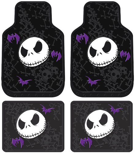 These floor mats feature a Jack Skellington design amongst a pattern of bones and skulls, with purple swooping bats to add a pop of color.