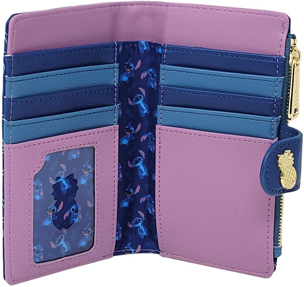 The wallet itself holds tons of cards and also an ID. An ID that is in a slot with another pineapple! The lining is also vibrant and fabulous and filled with little Stitches!