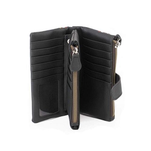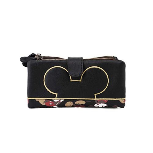 From the gold embroidered Mickey ears, to the classic Mickey print on the backside, to the gold zipper, and the slots on slots on slots for all of your card & change needs, this wallet is truly golden. The monochrome and pop of red will allow for easy pairing with any bag you may have on hand!