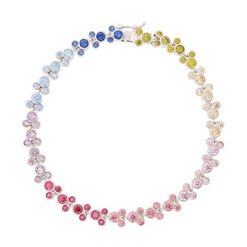 Inside, the beauty continues with the showstopper rainbow ombre cubic zirconia and sterling silver Mickey heads.