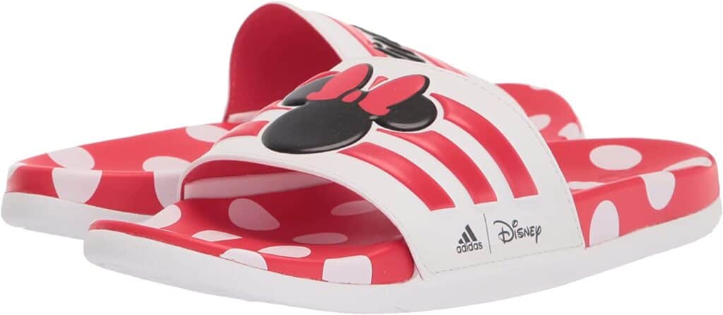Slides like this are usually too casual of a look for me. I’m not an athletic type fashionista so plain Adidas slides would never be found in my closet. You add Minnie to them, though, and I am all in!
