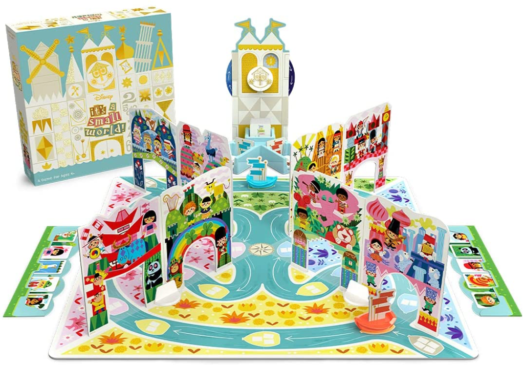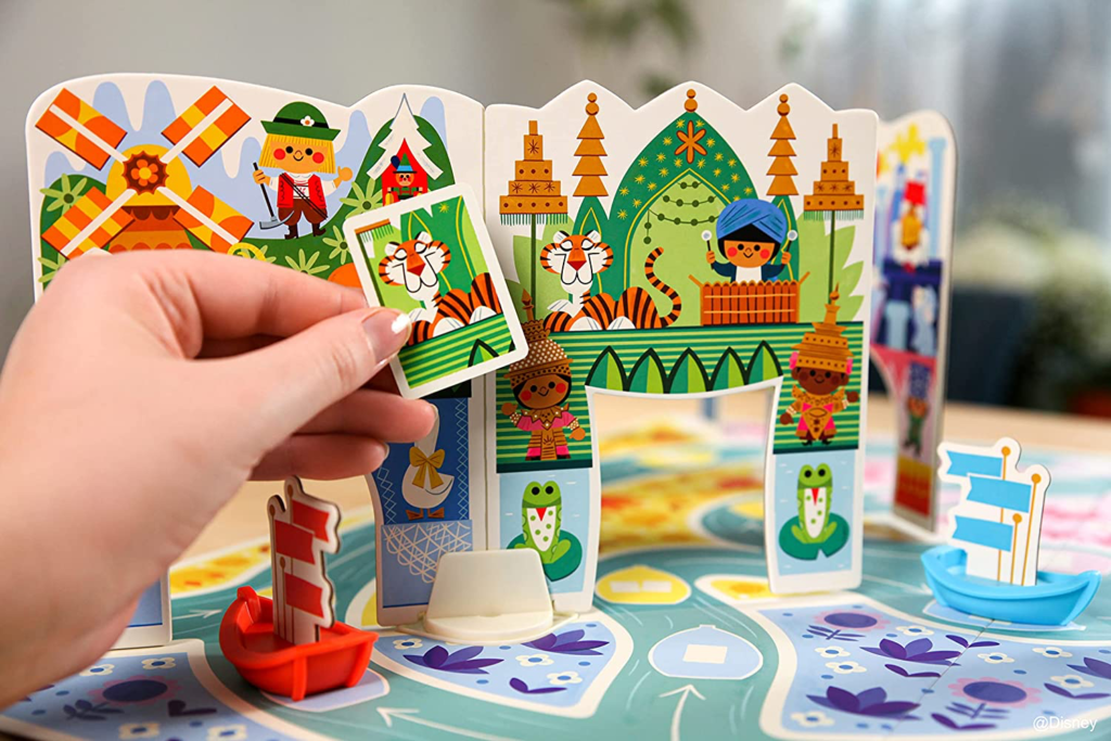 The game includes a 3D board centerpiece with images from the iconic attraction! Just collect cards and sail through the attraction on your boat journeying from room to room and matching picture cards to the scenes along with way! The clock tower will even help you keep track! When you’re not playing, the box for this game is pretty enough to display!