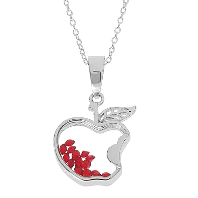 Following in the trend of the trinket necklaces, the apple outline pendant features a glass cover, allowing you to peer inside for tiny red gemstones to color the apple. Shake, shake, shake. Shake, shake, shake. Shake your apple!