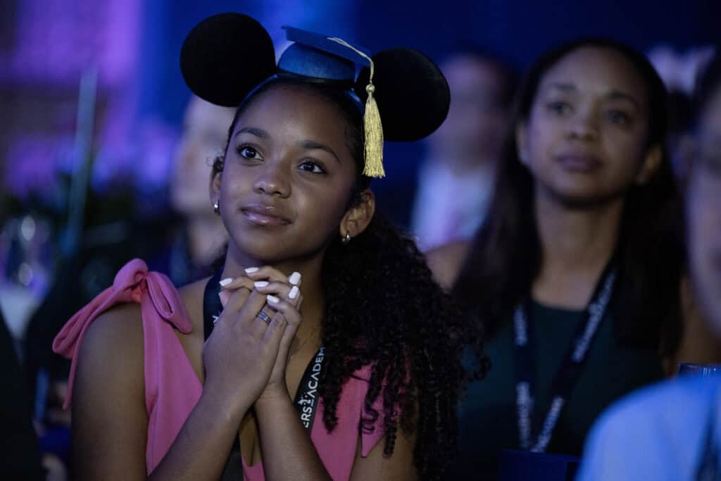 The party and the mentoring sessions during the week all led up to Sunday’s commencement ceremony, which featured popular Disney entertainment, beloved Disney characters, confetti, music and an emotional class ring ceremony that enlisted hugs and happy tears from students, parents and chaperones.