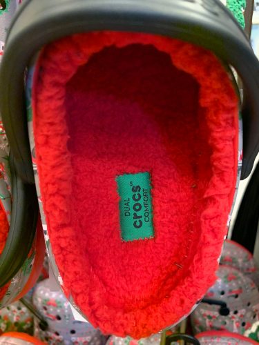 The lining is a supple, red, fuzzy material. These aren’t only fashionable but they are extra comfortable. Not that Crocs need help because they are pretty comfy as is. They would also keep those toes warm!