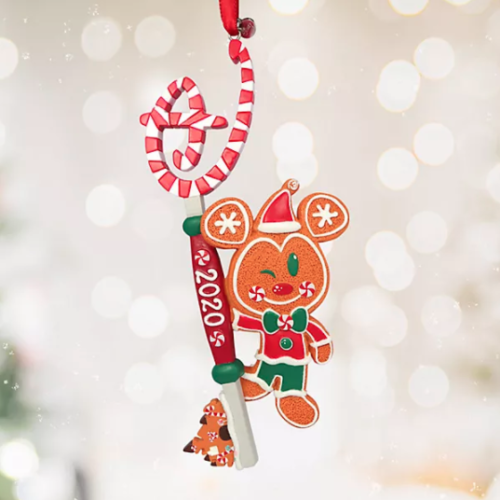 I am a pretty avid Disney key collector myself, and when I saw this new ornament I squealed with delight. It features a traditional Disney store key decked out with a peppermint striped “D”, and a gingerbread castle for the key teeth. Holding this scrumptious looking key, however, is the cutest little Mickey gingerbread man! The gingerbread Mickey is coated in red and green “frosting” clothes, with peppermint candy dimples, and a peppermint bow. He is topped with a frosting Santa hat, and looks so deliciously cute I want to take a bite out of him!