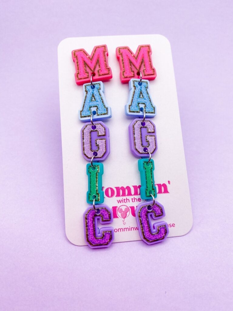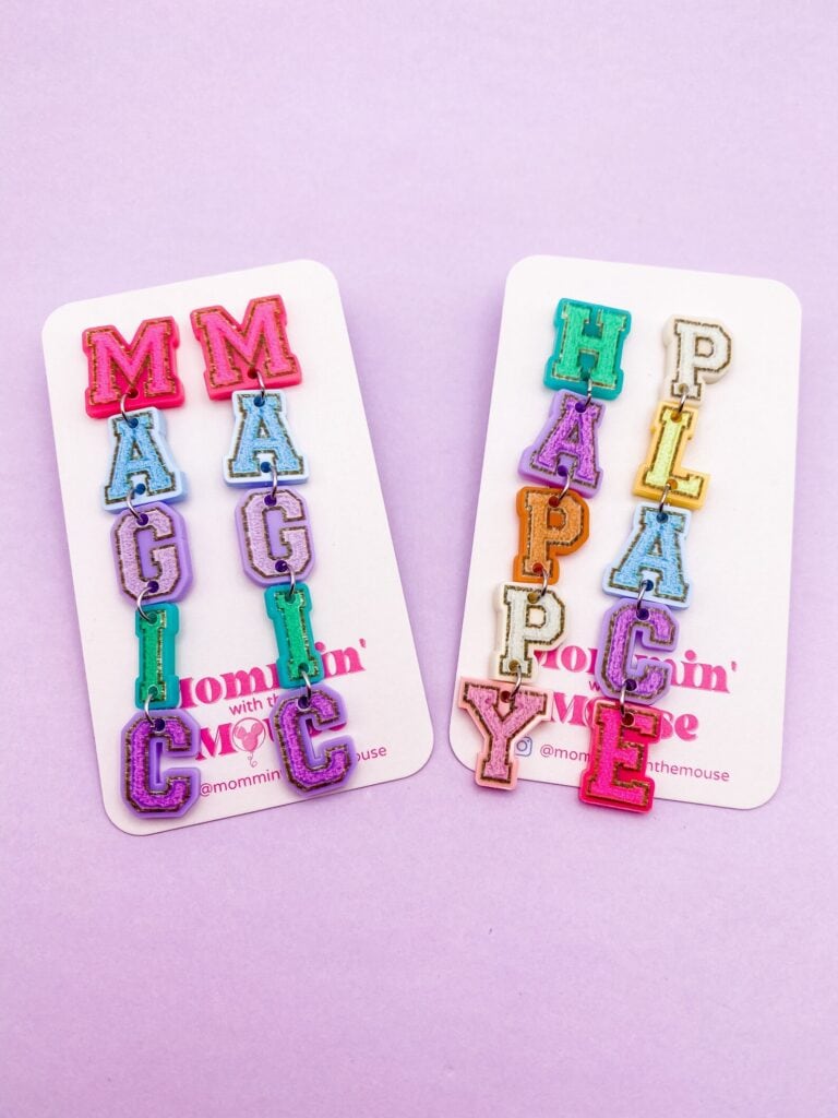 Show off your Disney style and pride with these Disney inspired Letter Patch Earrings from MomminwiththeMouse on Etsy. These earrings are pure magic and perfect for wearing on your next vacation to your happy place!