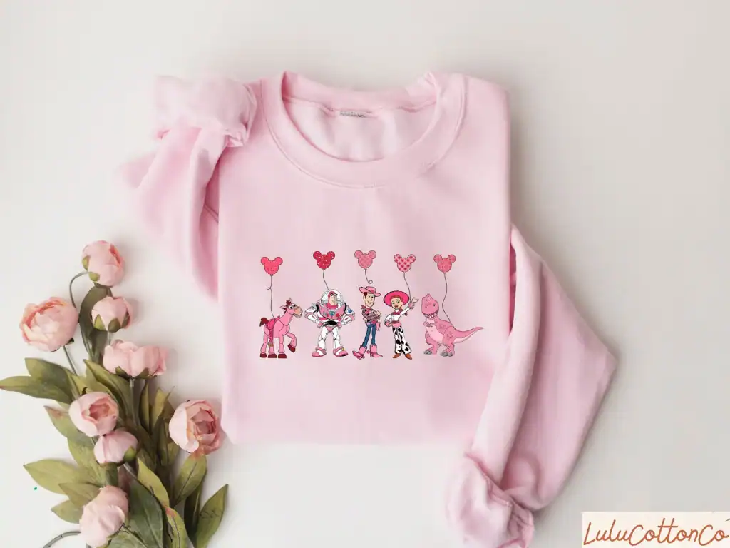 You’ve got a friend in me! You can show your love for your friends this Valentine’s Day when you wear this Toy Story inspired design. Bullseye, Buzz Lightyear, Woody, Jessie, and Rex are all decked out in pink and red to celebrate the holiday. Each of the friends is holding a red or pink Mickey Mouse balloon for some extra loving style. You can find this sweatshirt on Etsy from LuluCottonCo.
