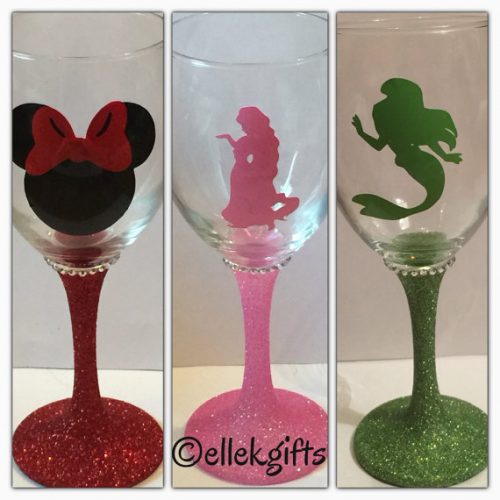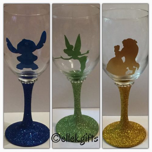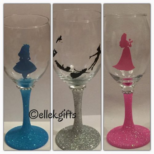 You can find these Disney inspired wine glasses on Etsy from ElleKGifts.