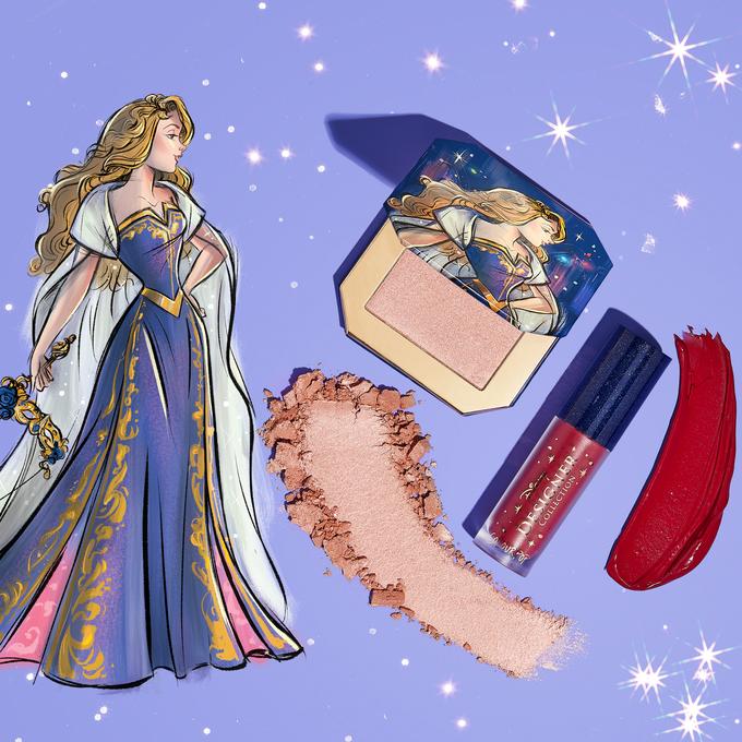 She may be a sleeping beauty, but Aurora assortment won’t be putting us to sleep. This might be another one of my other favorites for this collection. The enchanting red lipstick also compliments the coral blush fabulously.