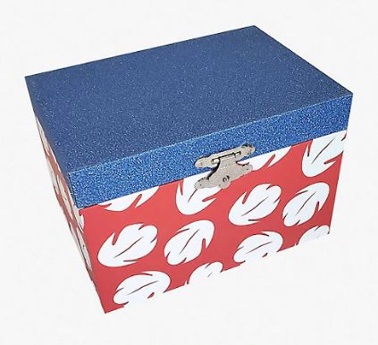 This Lilo and Stitch inspired jewelry box is perfect Hawaii lovers. The glittery blue top and Lilo’s white and red leaf print makes this design super eye-catching. The inside features a velvety lining, mirror and spinning Stitch doing the hula.
