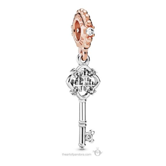 Unlock the kingdom with this stunning Disney Key pandora charm. It has a rose gold bail, and tiny little jewels add sparkle on the bail, around the castle, and even on the Mickey key edge. This is a must-have for me!
