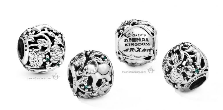 Animal Kingdom will finally be getting more Pandora love! A beautiful scrollwork bead with the logo will be offered, and woven within the designs are a silver elephant, turtle, owl, squirrel, buffalo, fish and lion.