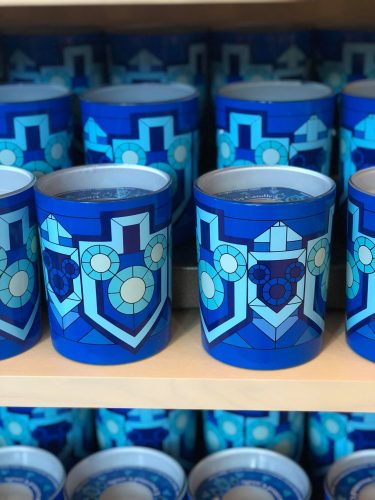 Last but not least, we can’t celebrate the festival of lights with out a little bit of candlelight! These gorgeous candle holders feature alternating sizes of the Mickey Dreidel design, and the glass can be reused as a candle holder after the original is finished.
