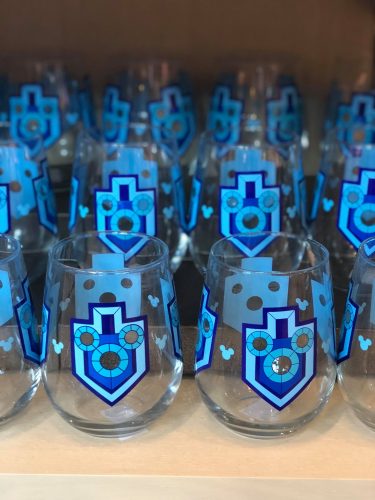 Gather with family and friends and say L’chaim with these gorgeous Hanukkah Mickey wine glasses! Four Mickey dreidels circle around the glass, with tiny hidden Mickey icons between each one.
