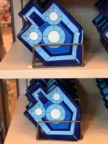 This year the Disney Parks Hanukkah collection showcases a beautiful blue design of a dreidel, with a mosaic Mickey Mouse design. Several shades of blue come together to create a stunning design that looks fabulous on a variety of items.