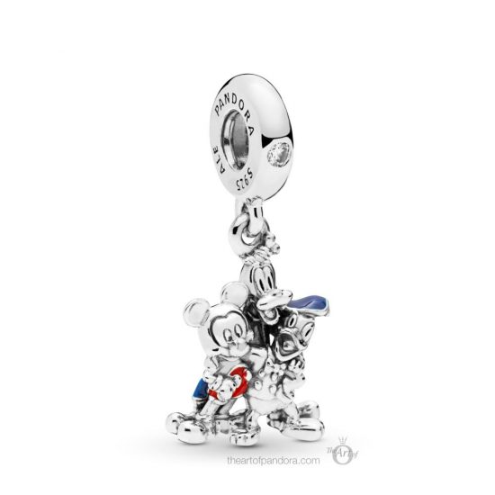 My personal favorite is the Disney Friends dangle charm. This gorgeous charm shows Mickey, Donald, and Goofy in a cheerful group hug! A white gem accents the charm’s bail for the perfect touch of sparkle.