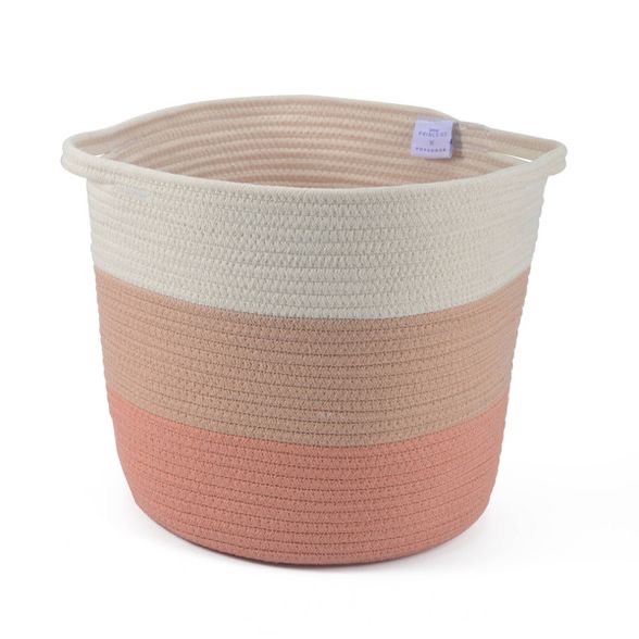Then, there are the tricolored storage baskets! They come in blue, green, purple, and coral and are perfect for everything from laundry to kids’ toys!