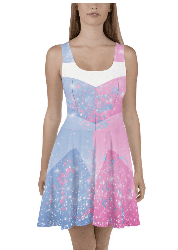 There are also several more princess dresses on the site. It wouldn’t be a round up post from me without Sleeping Beauty and as luck would have it, there is a Sleeping Beauty Make It Pink – Make It Blue Skater Dress. While there are so many great things about this dress, I think that what makes it really stand out is that it looks like fairy dust all over it. Also, the shading makes it seem like there is an upside down tiara at the waist of the dress.