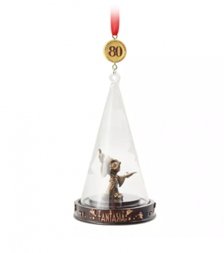 The Sorcerer’s Apprentice conjures magical memories with this ornament celebrating the 80th Anniversary of Fantasia. The ”sorcerer’s hat” is encased in a glass with commemorative charm. It is also a milestone for Mickey and his many admirers.