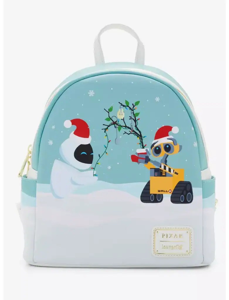 Celebrate the holiday season with your favorite Disney•Pixar robots and this Loungefly mini backpack & matching wallet! Featuring a portrait of EVE and WALL•E decorating a tree with glow-in-the-dark lights, the back of this bag includes another portrait of the robot duo. With side pockets, a matching interior lining, and adjustable straps, this backpack is perfect for storing your holiday essentials. You can find them HERE.