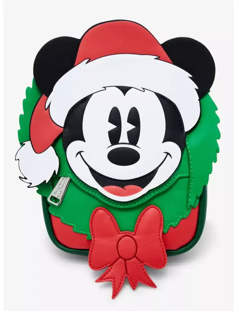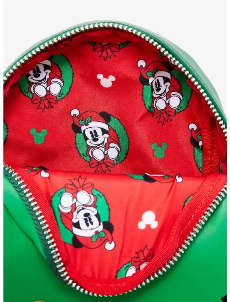 Bring some holiday cheer to your look with this Mickey Mouse-inspired wristlet! Featuring an appliqué of Mickey in a Santa hat with a wreath behind him on the front pocket, the interior lining includes a matching print. With a removable wrist strap and removable buckle belt strap, this bag can be worn multiple ways, perfect for all of your Disney adventures. You can get it HERE.