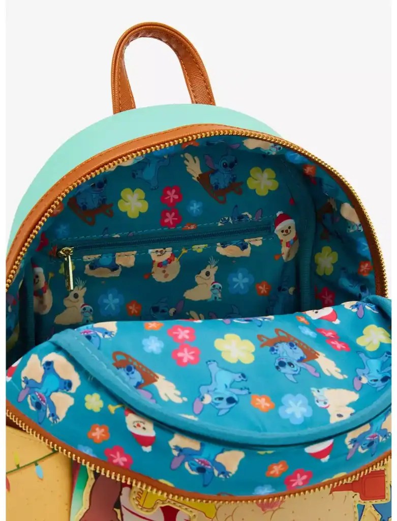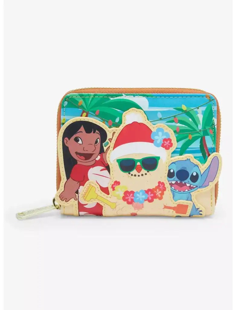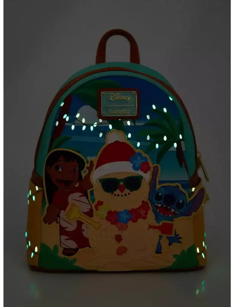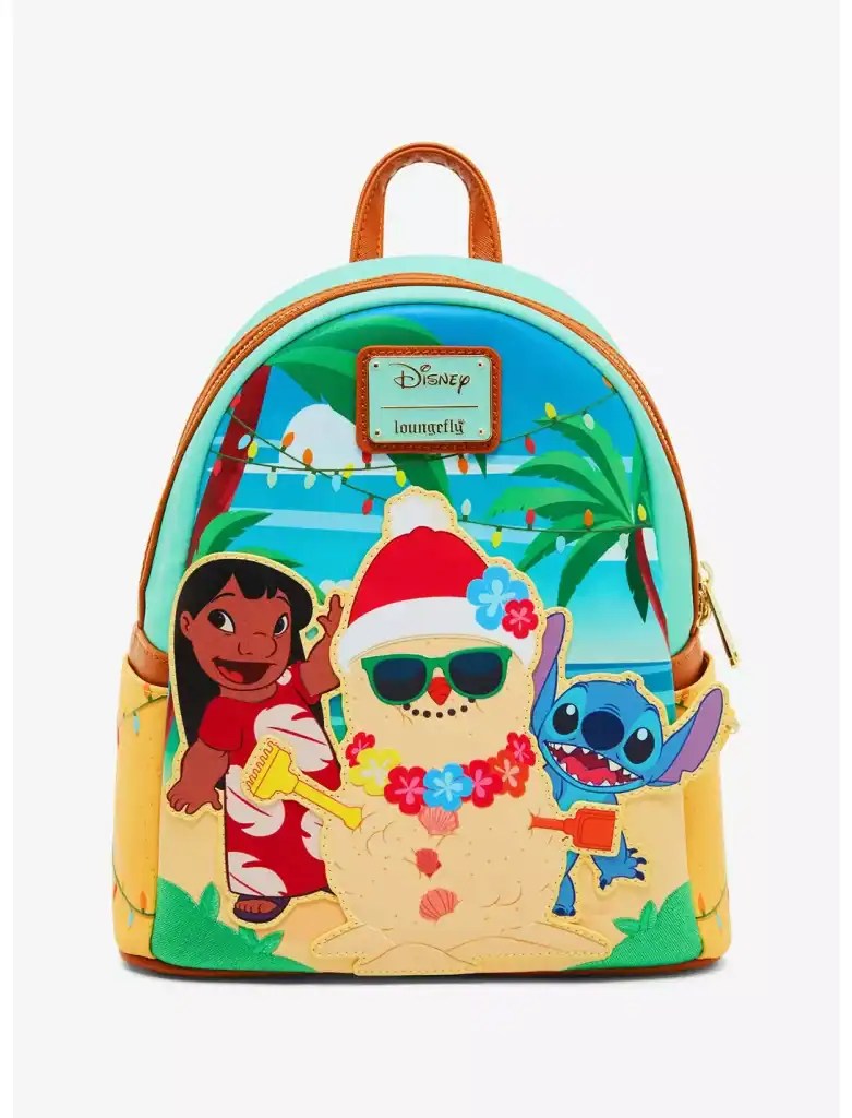 Celebrate the holidays in tropical Disney style with this Loungefly mini backpack & matching wallet. Featuring appliqués of Lilo and Stitch building a sand snowman, the front of this bag includes embroidered grass details and debossed glow-in-the-dark lights. With side pockets, a Scrump sand sculpture design on the back, and adjustable straps, this bag is perfect for fans of the Disney film. You can get it HERE.