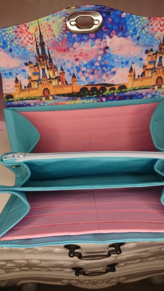 Home is where the castle is! You’ll feel at home wherever you go when you carry this Disney Castle inspired wallet. The pink and blue interior lining totally reminds of the Make It Pink, Make It Blue scene from Sleeping Beauty too!