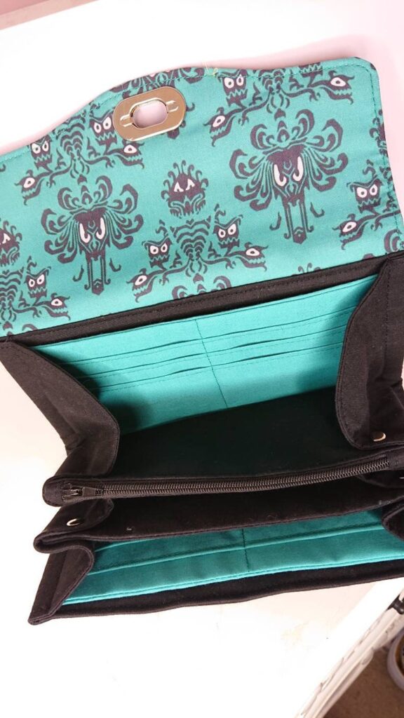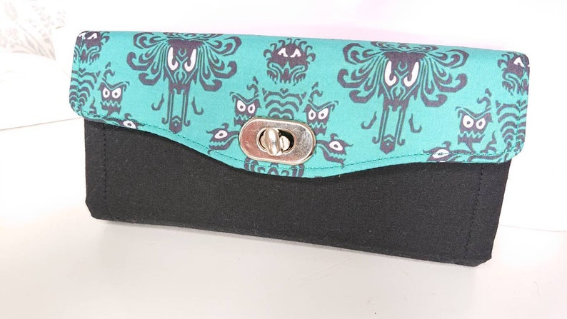 You will be the envy of every Happy Haunt when you use this teal Haunted Mansion inspired wallet. The teal is a really nice departure from the usual purple pattern that we are used to seeing.