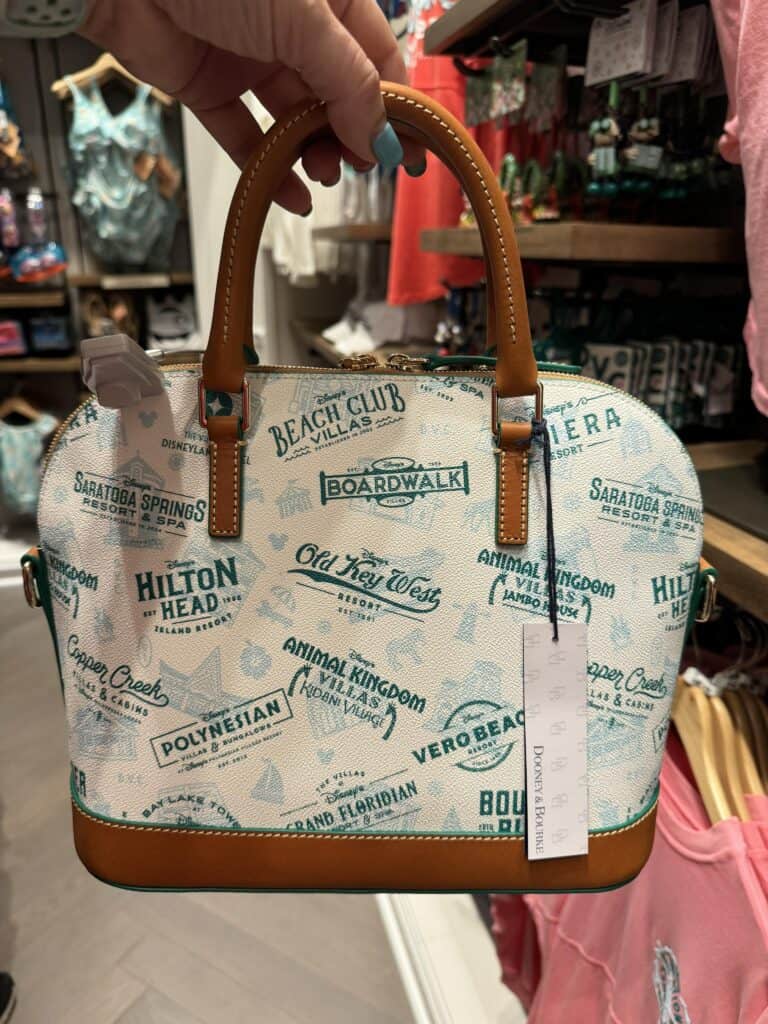 Una nueva colección de la marca de bolsos Dooney and Bourke en colaboración para Disney Parks fue vista en el Disney´s Rivera Resort con tema de Disney Vacation Club. En un fondo color blanco y los logotipos de los resorts en tonos turquesa vemos diferentes propiedades, no sólo las de Walt Disney World sino también a Aulani, Copper Creek y Boulder Ridge. Disponible en dos siluetas hasta el momento tenemos la tipo domo y la crossbody con zipper frontal.