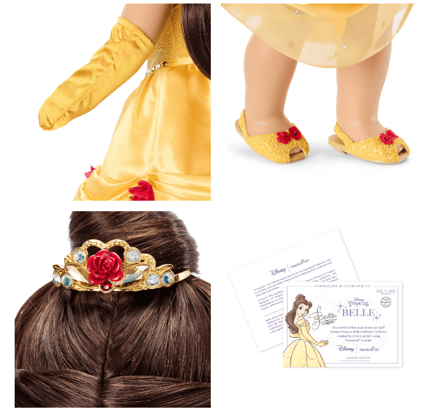 Belle adores adventure stories that introduce her to new places and people. Celebrate this beloved Disney Princess with this enchanting collector doll, adorned from crown to gown in Swarovski® crystals. This limited-edition Disney Princess doll is part of the American Girl® Collector Series. No more than 4,000 American Girl® Disney Princess Belle Collector Dolls have been created worldwide.