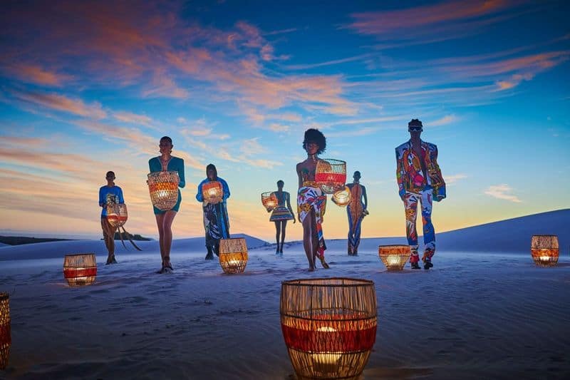 The collection is featured in a short film shot in South Africa by Femi Oladigbolu, which weaves together the collection’s designs, incredible scenery and the story of a Rousteing-led Balmain Army, composed of models from all across Africa, making its way toward a joyous homecoming celebration. Oladigbolu’s film will be presented as part of the July 5th “Lion King In Concert” evening at London’s Royal Albert Hall, featuring the Chineke! Orchestra.