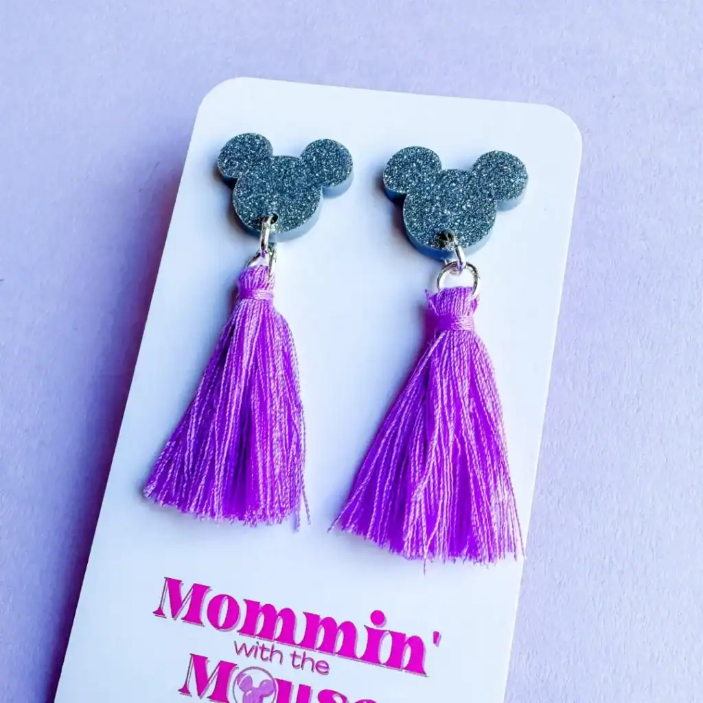 Celebrate 100 Years of wonder with these Tassel Earrings! The Mickey Mouse studs measure 20MM and are made from Silver Glitter acrylic with a hypoallergenic stainless steel post. Overall, the earrings are 2” long and extremely lightweight. You’ll be able to wear these all day without getting the dreaded earring earache. You can find them on Etsy from MomminwiththeMouse for $12.00.