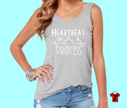 If you have the heartbeat of a Princess, this tank top from HappyTeeDay on Etsy is perfect for you. I love the design, which also features a hidden Mickey! This tank top would be perfect to wear on your next trip to Disney Parks, or even your next trip to the grocery store. The light gray color is the perfect neutral for any colored short, skirt, or pant. I actually love how they have it styled in the picture: distressed jean shorts and stacked silver bangles make this shirt the centerpiece of the outfit.