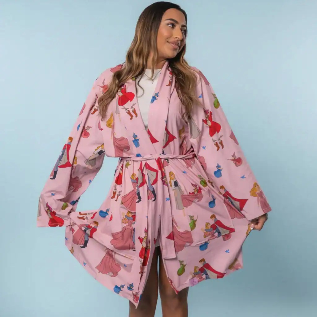 Finally, this wouldn’t really be a Sleeping Beauty release if it didn’t have something to sleep in! As luck would have it, Cakeworthy has a new Sleeping Beauty PJ Set and matching Sleeping Beauty Robe. Both items have a pink background, which matches the color of Sleeping Beauty’s Dress. The prince and Sleeping Beauty dance around both items as the three fairies and many of Aurora’s forest friends look on as they twirl about.