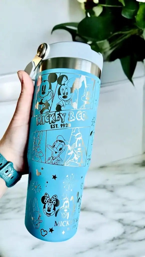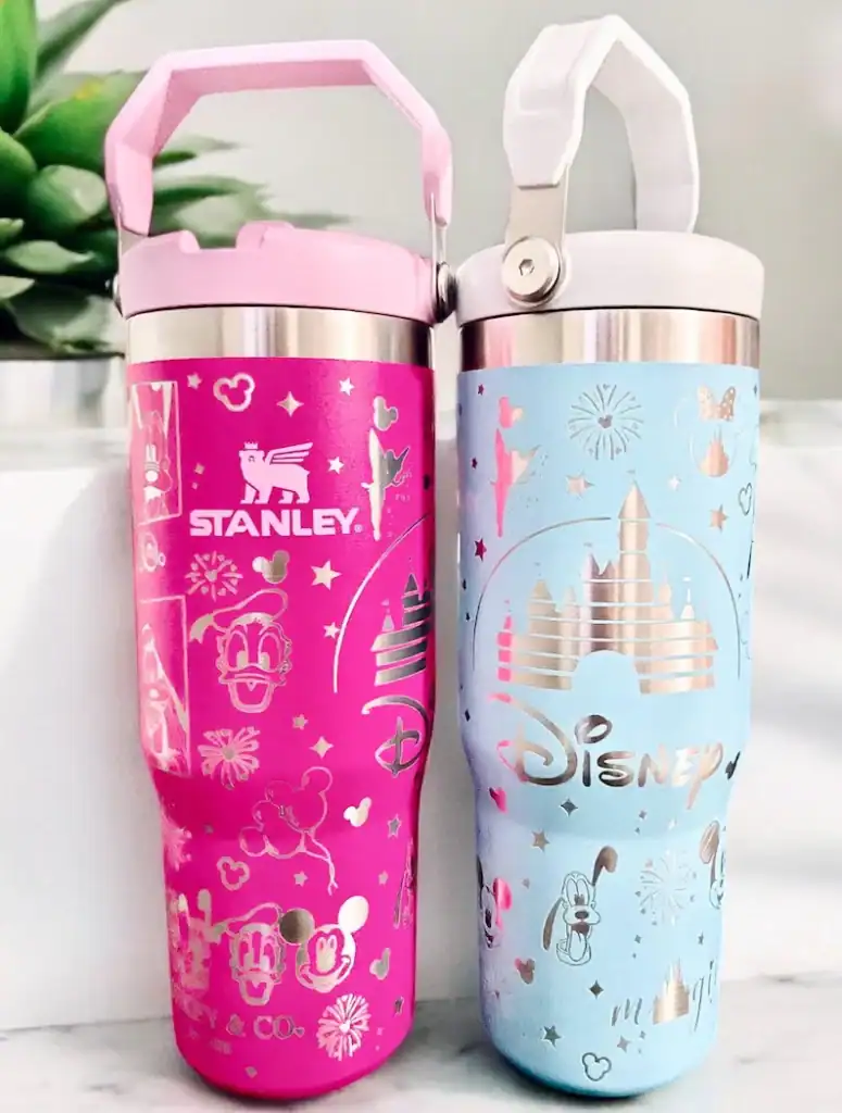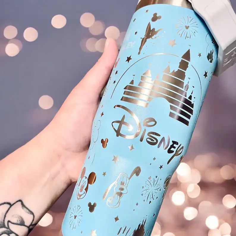 Crush your hydration goals and make your dreams come true with a Castle Engraved Stanley Tumbler from GarrettHandmadeCo on Etsy. Available in several different color options, these tumblers are stunning and the perfect way to show your Disney style on the go.
