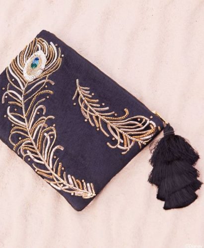 A versatile pouch to keep your important goodies inside while you enjoy a magic carpet ride! Featuring hand-beaded embroidery of a feather on one side and Jafar’s Serpent Snake Staff on the other, this pouch also includes an interior pocket and handmade tassel trim.
