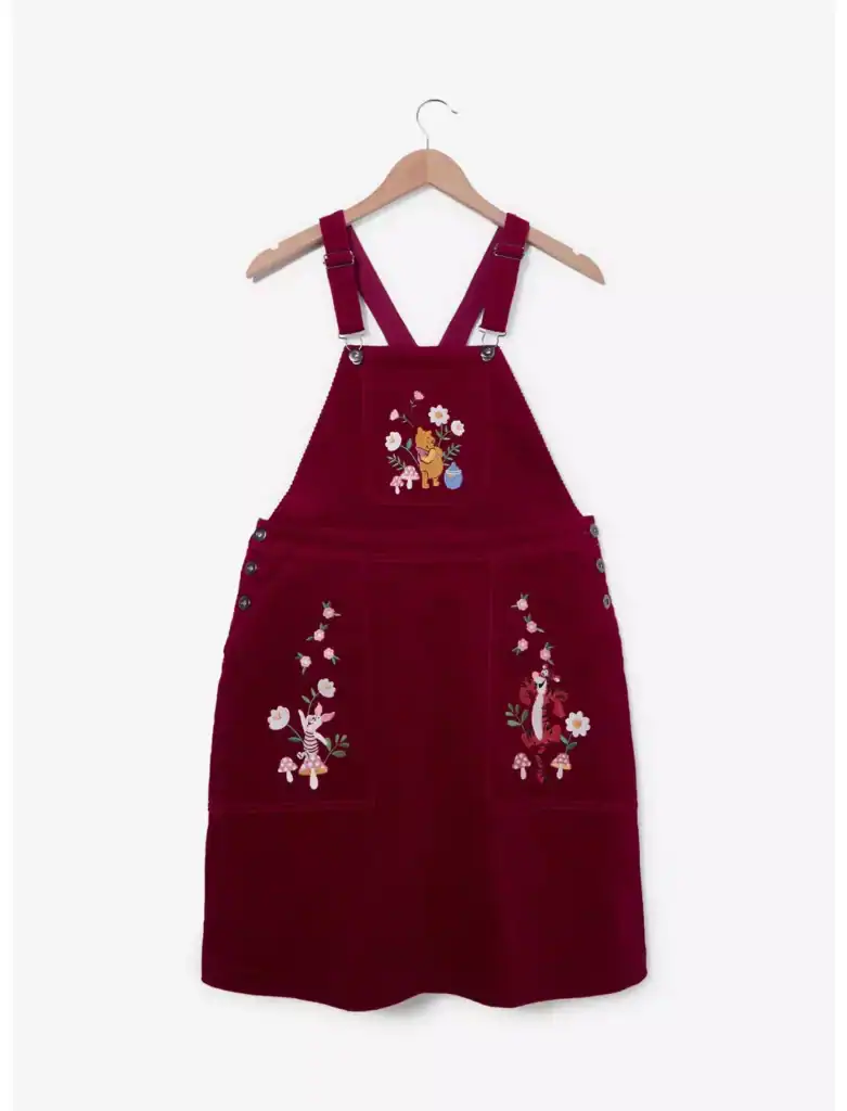 The first dress has a very retro and playful look. This Pooh Overall Dress has classic corduroy fabric that reminds me of pictures of holidays during the 1950s and 1960s. Pooh, Piglet, and Tigger are all on the dress together, surrounded by flowers. This is sure to be my go-to Thanksgiving look. The burgundy color of the dress would look great when you present the turkey at your holiday feast.