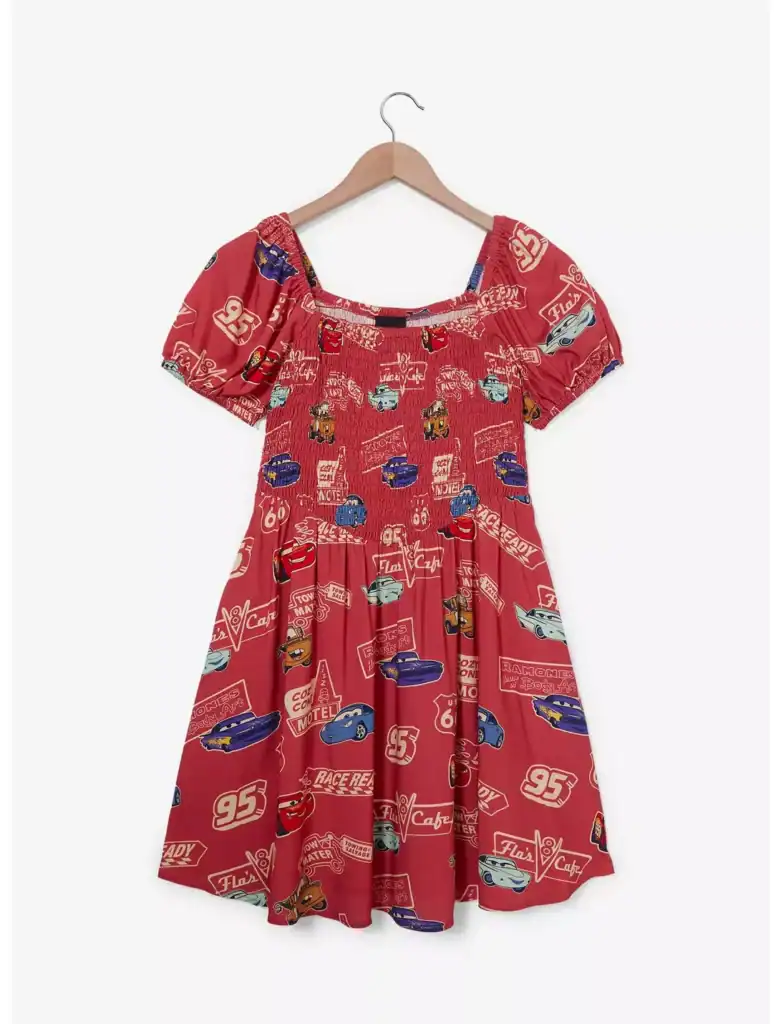 The second dress is this Cars Smock Dress, found here Its vibrant red colors are sure to pop at any holiday party. While Cars isn’t a traditional holiday movie, looking at the dress reminds me of long car rides with friends and family for Thanksgiving. The dress also has a very flowy body, which is just asking to be danced around in. Also, you won’t have to adjust your pants after you eat all of the holiday treats.