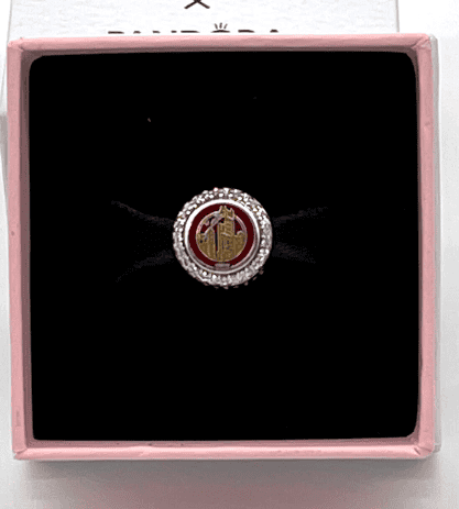The back of the charm again utilizes the burgundy and gold on the hotels monogram. The regality and elegance of the monogram on this Pandora charm captures the Old Hollywood style.
