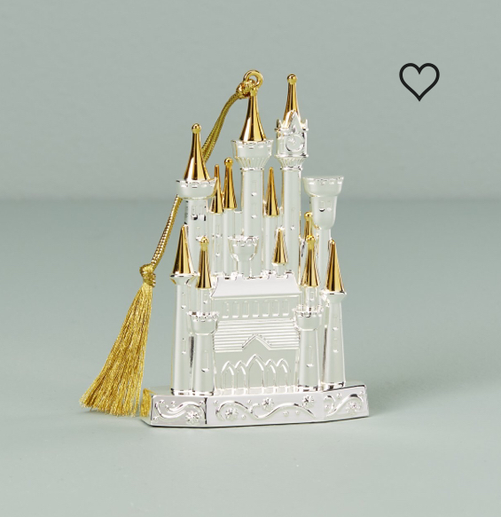The other castle ornament looks a little more like Cinderella Castle from the movie and truly has that ‘wow’ factor! It is silver plated with gold accents in a 3-D design. Forget the Christmas tree, I would leave this one out on a shelf year-round!