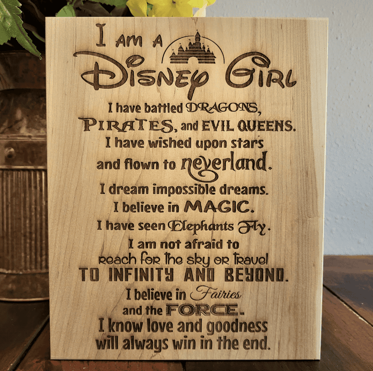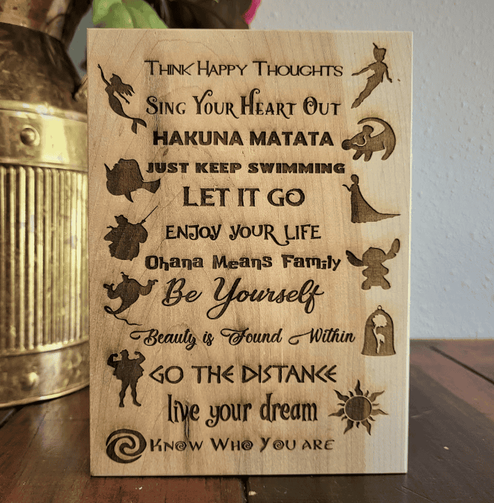This engraved sign is filled with Disney phrases that are sure to put a smile on your face. If you’re feeling a bit down or like you could use some extra encouragement, this sign is for you! It reads: