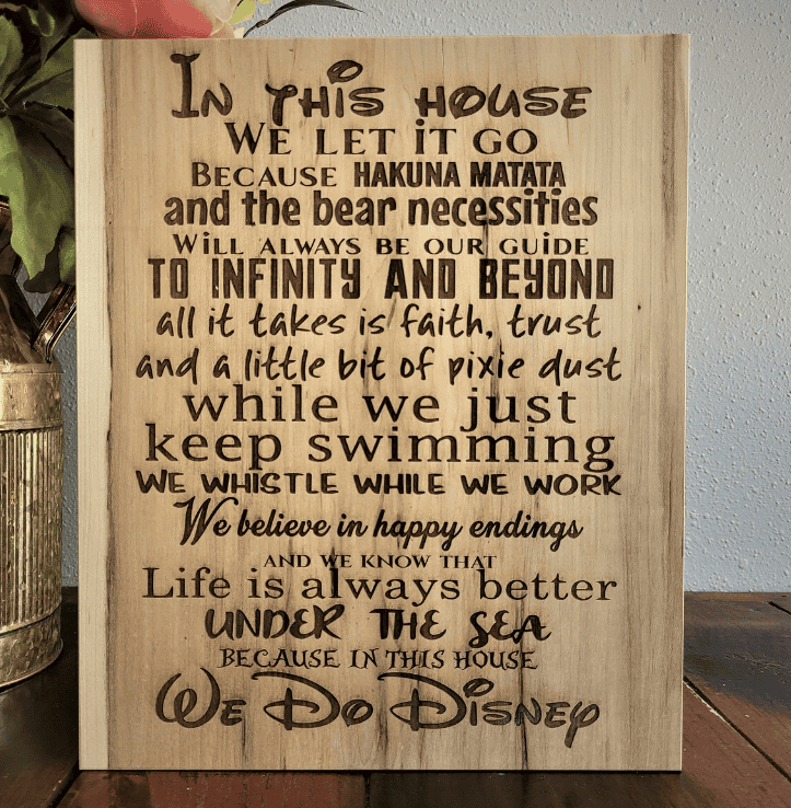 Engraved signs are a fun way to add a touch of character to your home. These engraved signs from RoughCutCompany on Etsy feature magical and distinctly Disney phrases. Add one of these signs to your home for your own little bit of magic.