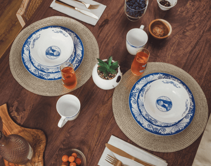 If you’re like me, then you’ve already started planning for the spooky season. Whether you’re preparing dinner for your family or an elaborate feast for a crowd, this set has you covered. The retro blue and white Qinghua-style pattern looks like something that you would find in a Haunted Mansion or at a party hosted by the Pumpkin King, Jack Skellington himself.