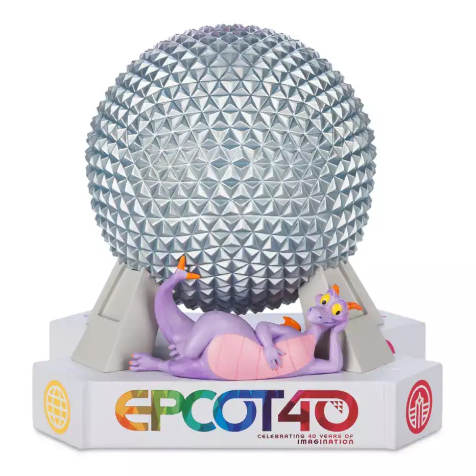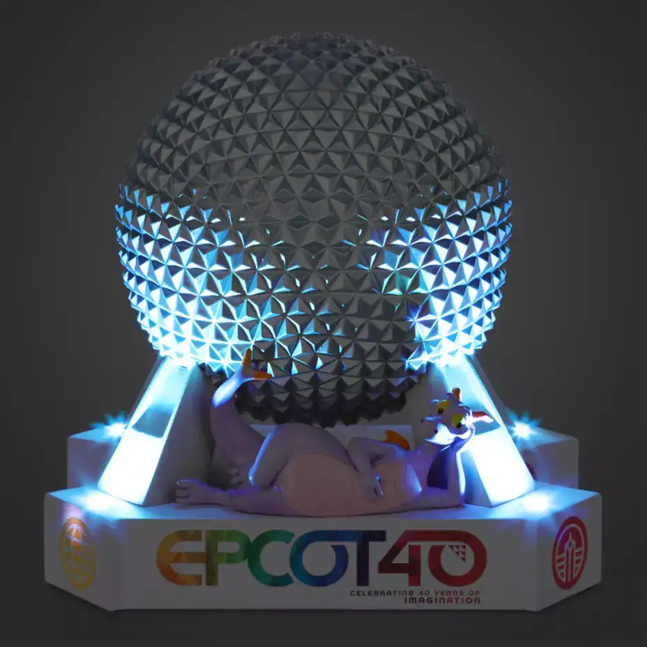 Add drama and style to any room! This fully sculpted Spaceship Earth miniature features dramatic multicolor lighting and a commemorative EPCOT 40 logo. You can also find Figment lounging in style front and center!