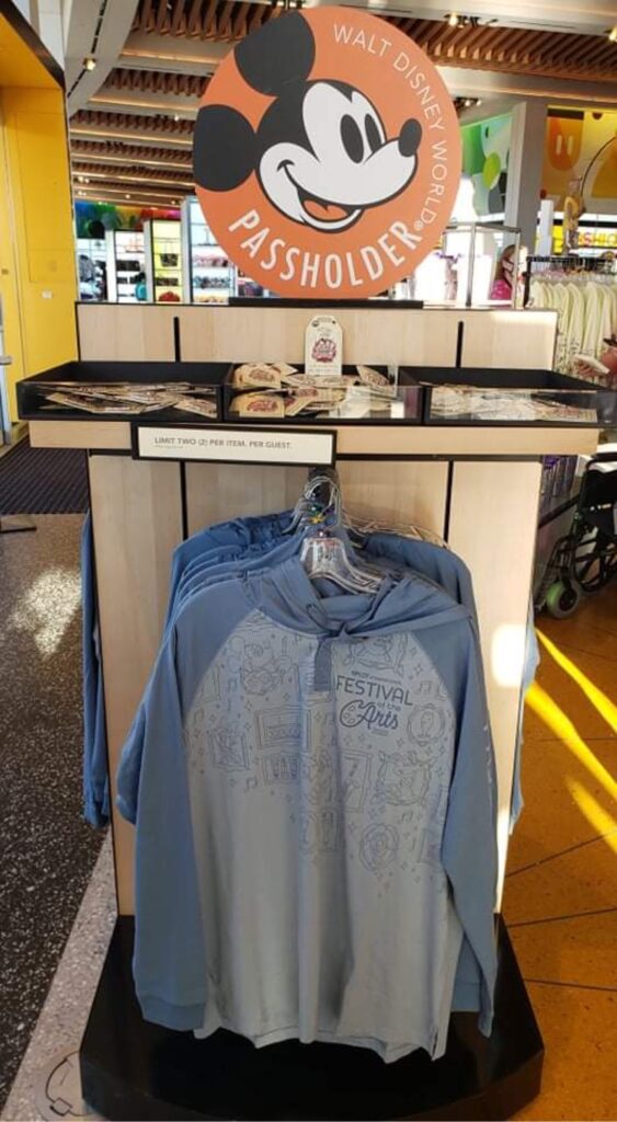 My favorite piece of merchandise might be the Festival of the Arts Passholder shirt! This long-sleeve, hooded style is great for when the temperature starts to drop at night while you are exploring Epcot.
