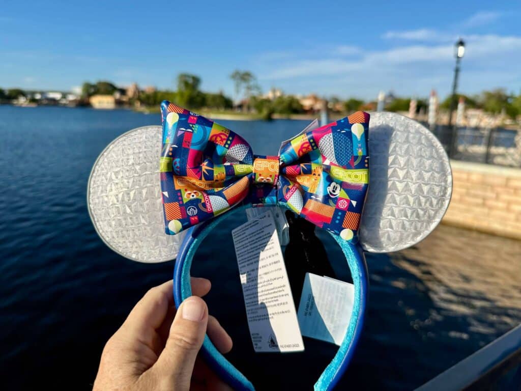 The ears of this design are made to look like the iconic Spaceship Earth. They sparkle with a subtle iridescent shine, which perfectly reflects the Florida sun. The large center bow is detachable, which is a trend we have been seeing more and more of at the parks. However, this bow is so cute, you are definitely going to want to keep it attached!