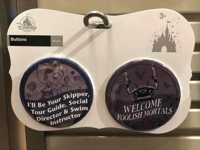 The newest Attractions inspired buttons have a monochromatic look, that gives them a retro vibe. The first features the Jungle Cruise, perfect with the new movie coming out, and the second features Haunted Mansion! The Haunted Mansion one is perfect for the recent anniversary, and of course with Halloween coming.