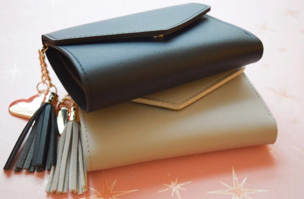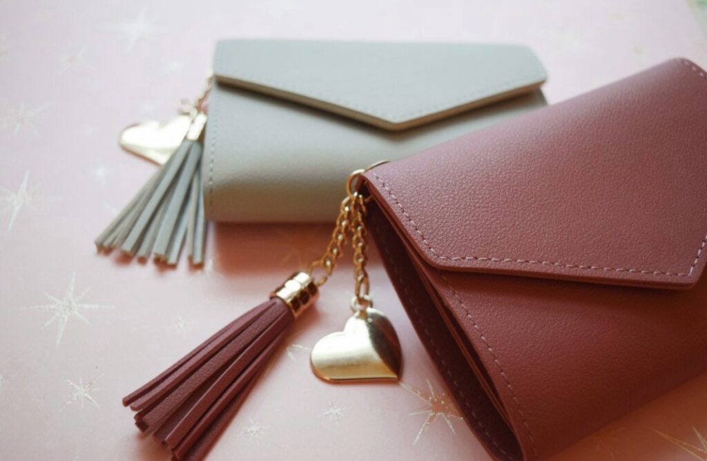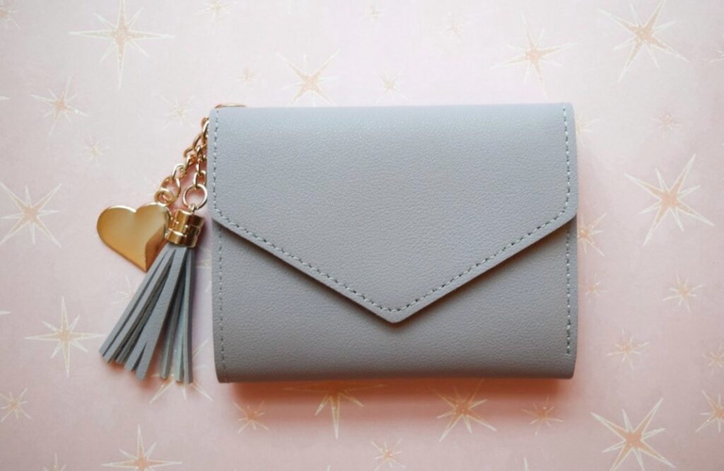 Approximate dimensions: 4.75″ wide x 4″ tall x 1″ deep. For a size comparison, this wallet is similar to the size of a standard index card. Each faux leather wallet features 7 card slots, 1 large cash/receipt pocket, a snap closure, and a heart charm and tassel.