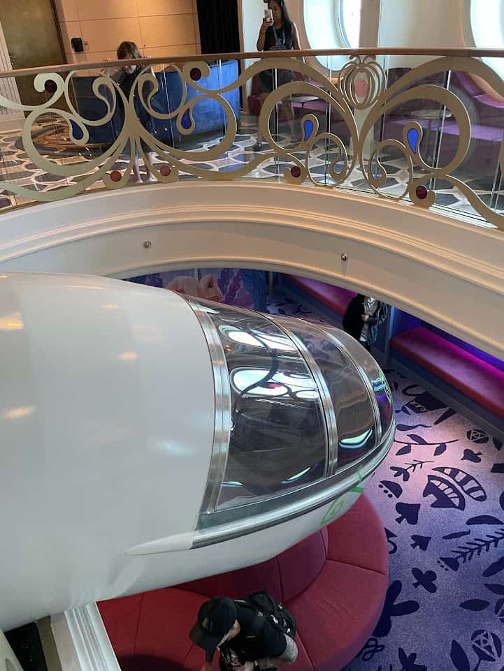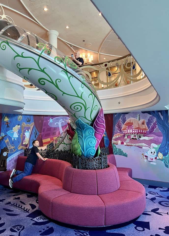 The magic starts before you even enter the club! In fact, you have to fall down the rabbit hole and into Wonderland before you can truly experience all the club has to offer. Children (and adults during specific Open House hours) can slide into the Oceaneer Club via a super fun (and fast!) slide. Parents are able to check in their children in the Grand Hall on deck 3 and then send them “down the rabbit hole” on a twisting slide that lands directly and securely into the central hub of the Oceaneer Club.
